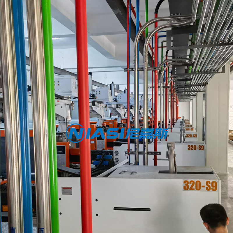 常溫冷卻水管路運行變頻器與 PLC 實現(xiàn)通訊,將自動運行控制設置的壓力 調節(jié)壓力與流量,冷卻塔風機根據回水管道溫度與溫度設定值,通過變頻器中的 PID 控制器,根據溫差自動控制降溫曲線斜率和輸出頻率,以達到快速降溫的目的,在溫度低于一定限度,冷卻塔風機可以停機,并能夠降低從熱水池抽到冷卻塔的流量,同時降低風機變頻器和冷卻塔水泵的用電,管道自身將參與熱量的交換。