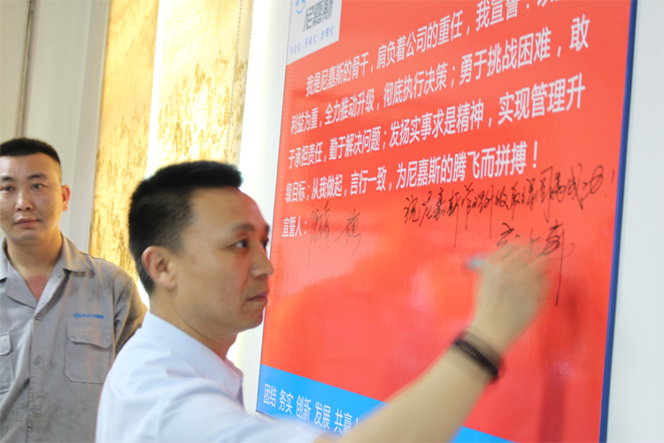 我是尼嘉斯的骨干,肩負(fù)著公司的重任,我宣誓:以企業(yè)利益為重,全力推動(dòng)升級(jí),徹底執(zhí)行決策;勇于挑戰(zhàn)困難,敢于承擔(dān)責(zé)任,勤于解決問(wèn)題;發(fā)揚(yáng)實(shí)事求是精神,實(shí)現(xiàn)管理升級(jí)目標(biāo);從我做起,言行一致,為尼嘉斯的騰飛而拼搏!