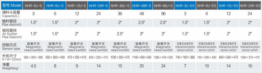 7.除NHR-48U、96U-S外其余均勻料斗蓋鉸鏈掀開式設(shè)計;