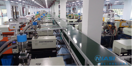 尼嘉斯的中央集中供料系統(tǒng)采用一臺機一根管,密封式回路設計方式,保證整個系統(tǒng)運行穩(wěn)定,絕無塑膠回潮、堵料現(xiàn)象發(fā)生。它配合中央干燥機(除濕機)系統(tǒng)使用,可使干燥空氣對原料進行再次干燥,防止干燥后的塑膠回潮,同時在每個輸送循環(huán)后對輸送管進行清理,確保管道內沒有殘料。在避免原料回潮的同時也保證加入注塑機中原料一致性,在真空負壓同進作用下,原料中原有的粉塵經過過濾器(集塵器)系統(tǒng)濾出,有利提高產品質量。